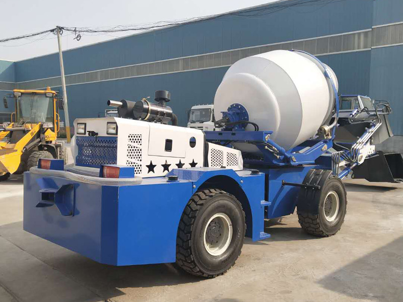 卸料:操作者利用操作桿通過270°回轉(zhuǎn)攪拌桶,在車輛周圍2m高度傾倒混凝土。